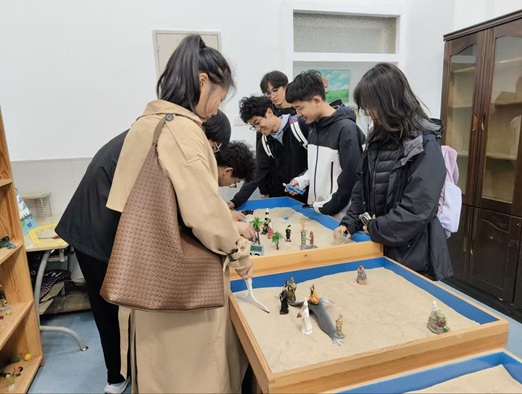 活动伊始,讲解员为同学们系统介绍了我校心理健康教育中心的发展历程、专业师资配置,并详细说明心理咨询的预约时段与操作流程,帮助同学们快速建立对心理健康服务的基础认知。随后,在讲解员的引导下,同学们依次走进桌游娱乐室、沙盘咨询室与音乐放松室,近距离接触各类专业心理服务空间。参观过程中,同学们热情高涨,主动参与心理设备体验,在亲手操作与真实感受中,直观体会到心理健康服务的多元形式与实际效用,更在互动中深化了对心理健康本质的理解,树立起科学的心理健康观念。