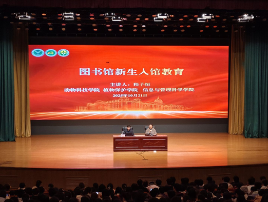 联合动物科技学院、植物保护学院于文化路校区千人大礼堂举行图书馆新生入馆教育讲座。三个学院全体2025级新生参加,特邀校图书馆老师程子恒担任主讲,活动由学院团委副书记李艳飞主持。