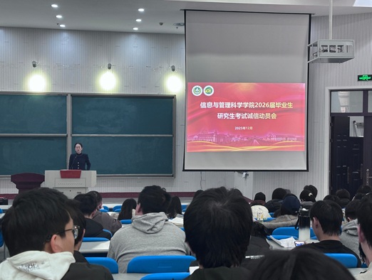 于繁塔楼大教室二召开2026届考研诚信动员会。本次动员会由22级辅导员倪天娇主持,22级全体学生参加。