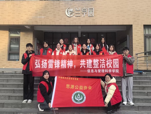 思源公益协会志愿者化身校园守护者,手持工具清理路面垃圾、整治环境死角、规范车辆停放,以实干姿态,美化校园环境,传递文明风尚。从技术助民到环境守护,从点滴小事到躬身实践,信管学子将雷锋精神内化于心、外化于行,把青春热情融入志愿服务,把责任担当写在行动一线。