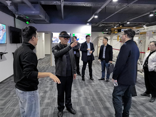 国机工业互联网研究院有限公司总经理陈磊、副总经理游冰等对学院领导一行的到来表示热烈欢迎,随后带领参观了企业展厅及创新实践成果展区。在全国农机作业指挥调度平台、农业人工智能平台、农机云平台等核心产品演示现场,详细介绍了数字技术在春耕生产调度、农机智能运维、农业数据治理等领域的创新应用。学院一行还现场体验了企业自主研发的虚拟操作试验台,可开展多场景、低成本的实训操作,有效解决了传统实训中高风险、高成本的痛点问题。