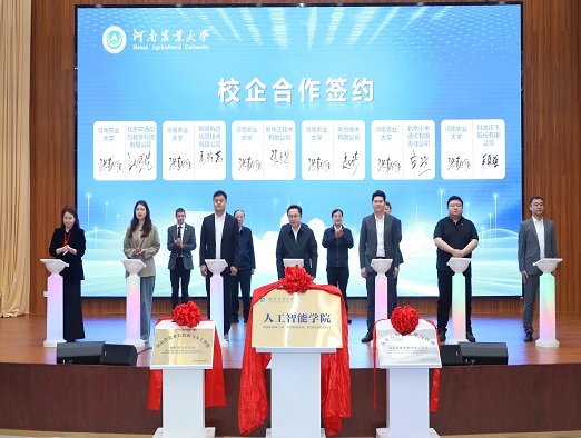 人工智能学院”“河南省农业大数据与人工智能国际联合实验室”“农业大数据处理与管理河南省杰出外籍科学家工作室”揭牌。